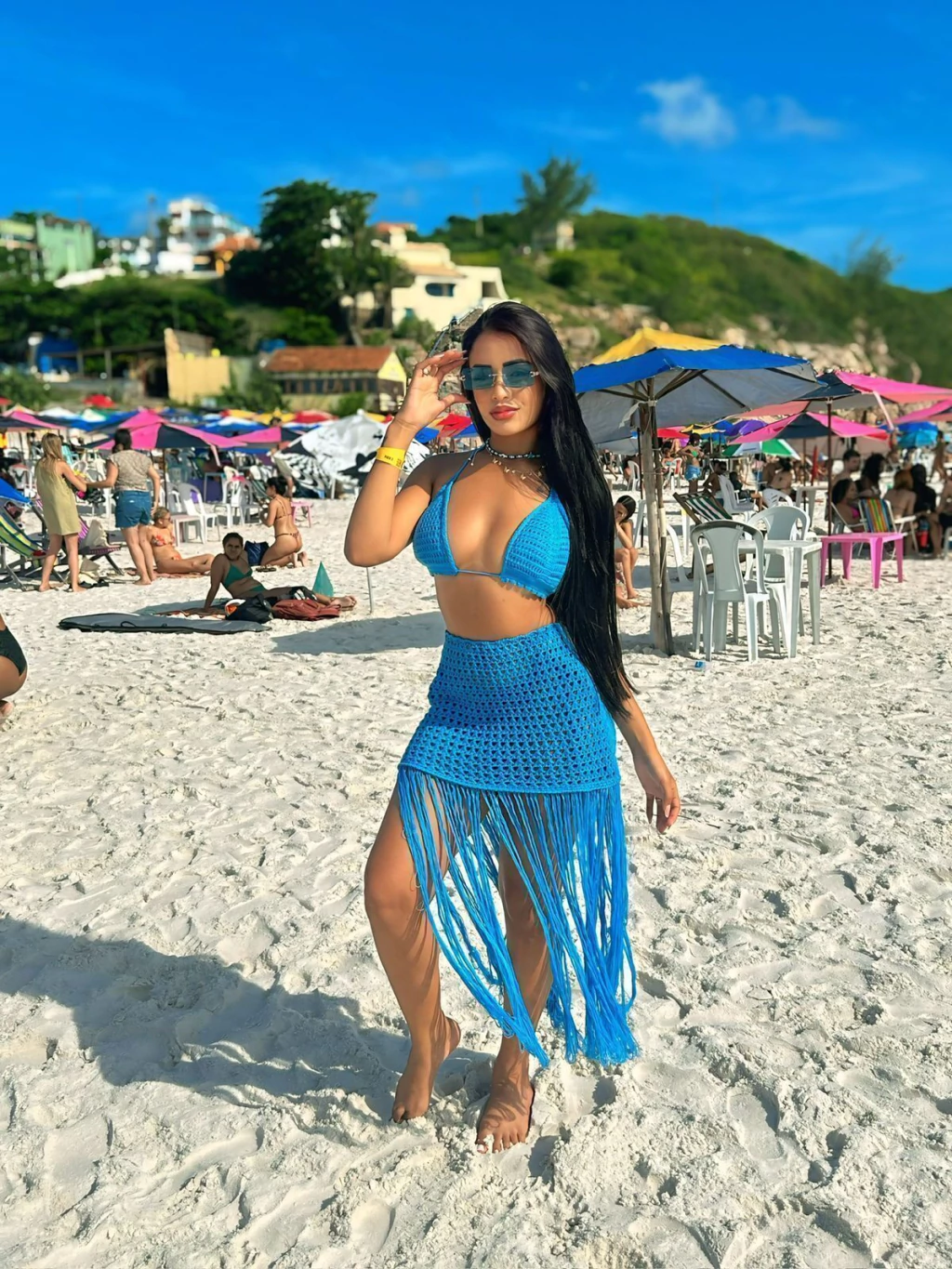 Arrase com este conjunto artesanal que une charme e estilo praiano! O biquíni em crochê valoriza o corpo com seu design exclusivo, enquanto a saia com franjas adiciona movimento e um toque boho chic ao seu look. Perfeito para dias de sol, praia ou piscina.