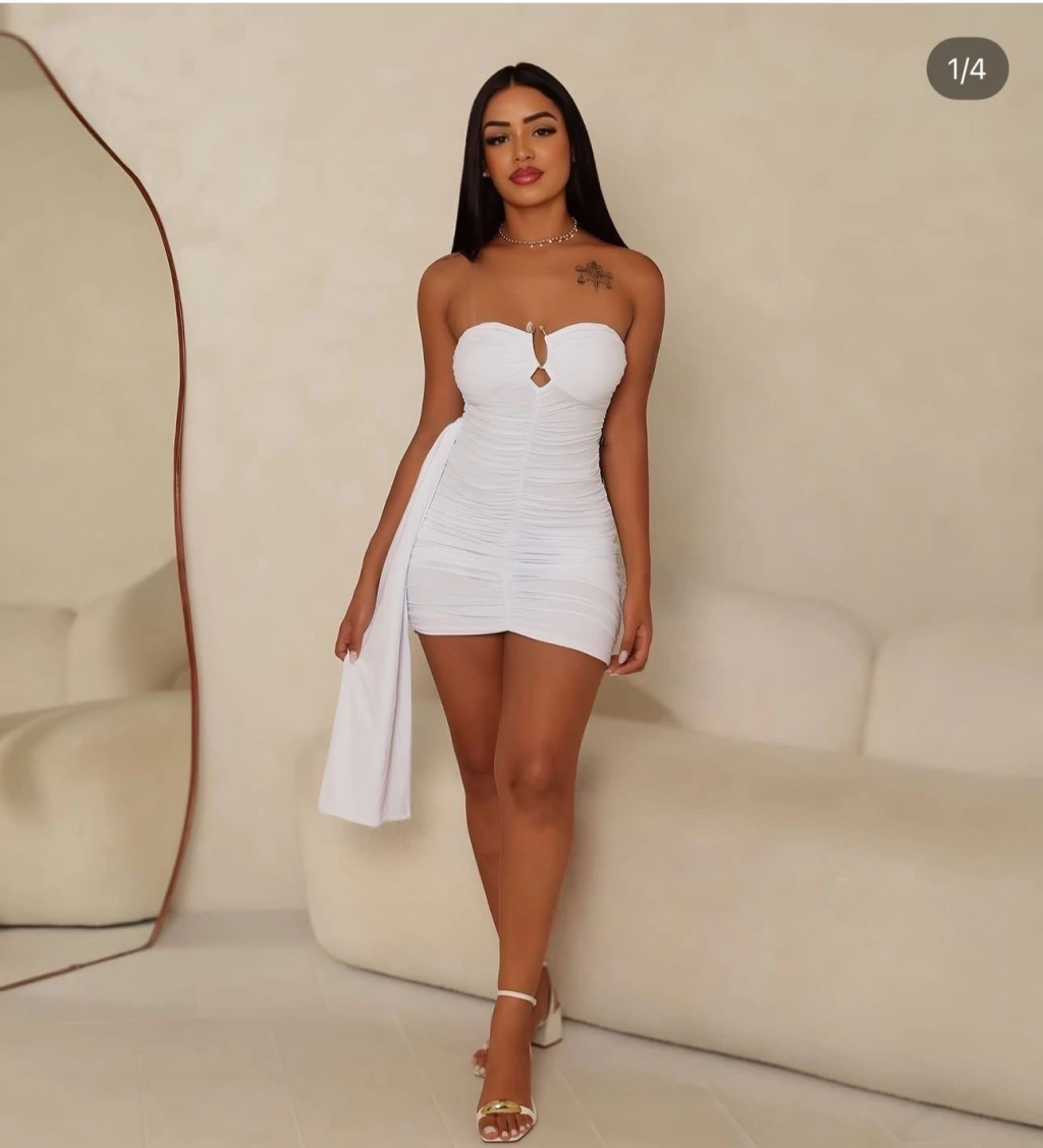 ✨ Modelo que valoriza o colo com seu decote tomara que caia, perfeito para destacar sua feminilidade.