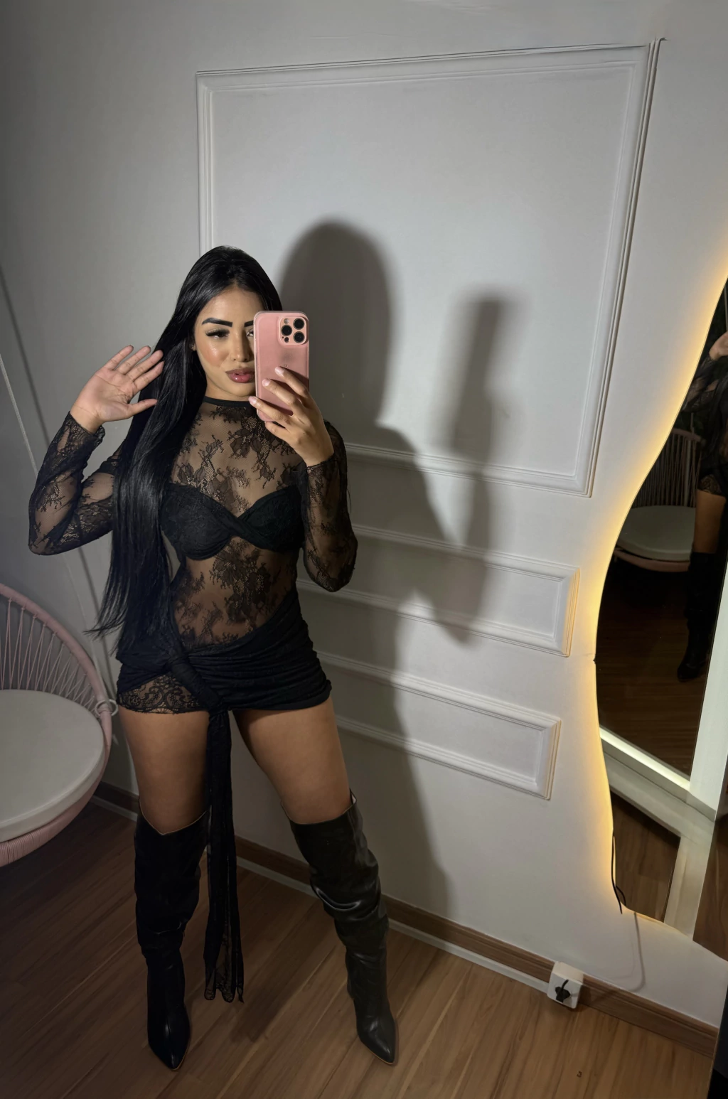 Um modelo ousado e super sofisticado, perfeito para produções noturnas e marcantes. Confeccionado em tule de renda transparente, ele traz sensualidade e elegância na medida certa. Acompanha body/forro estruturado em cor preta, garantindo segurança e valorizando as curvas femininas.